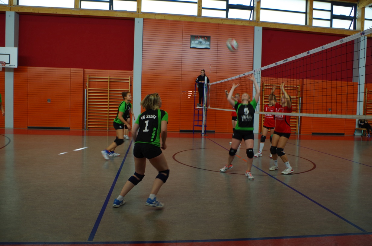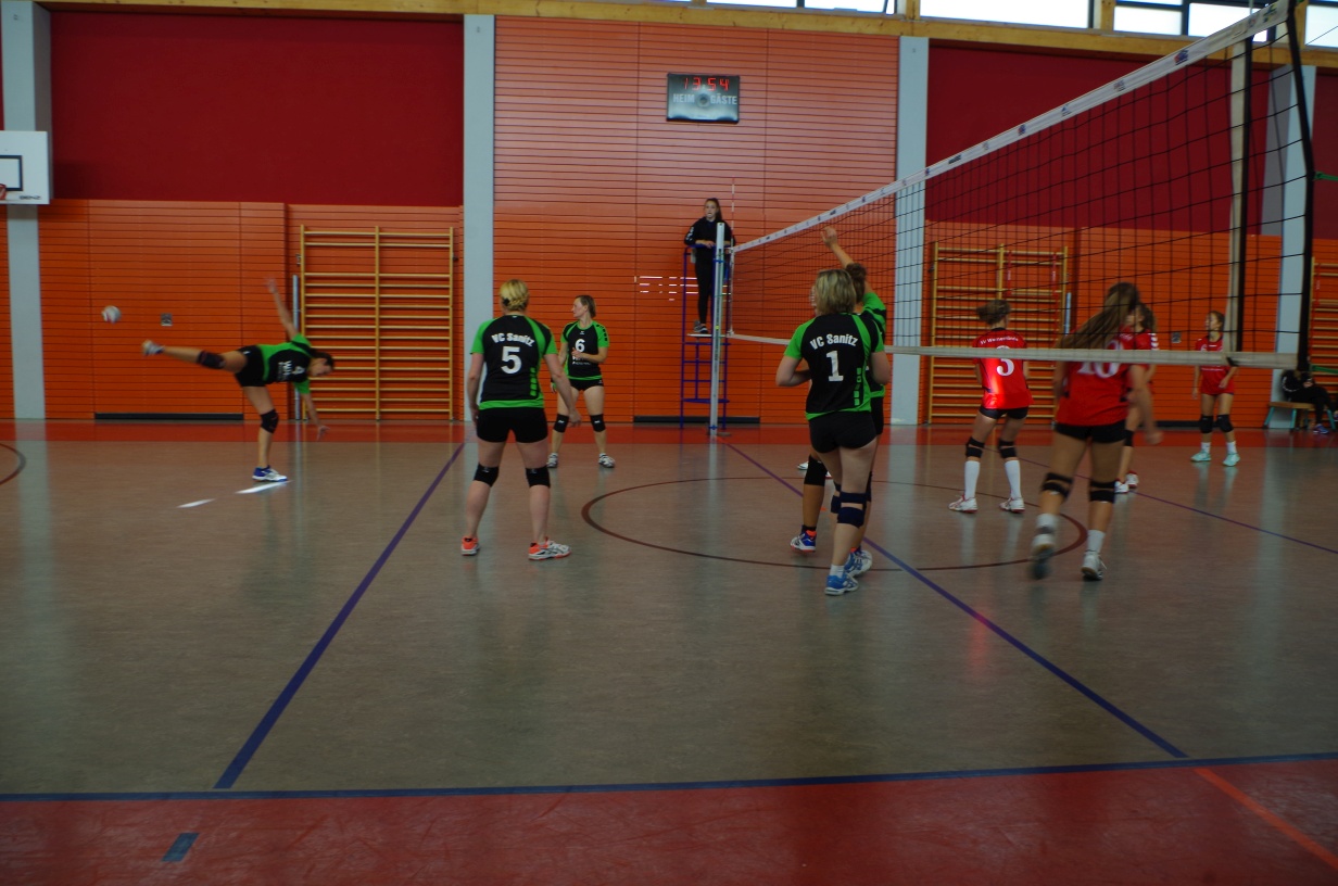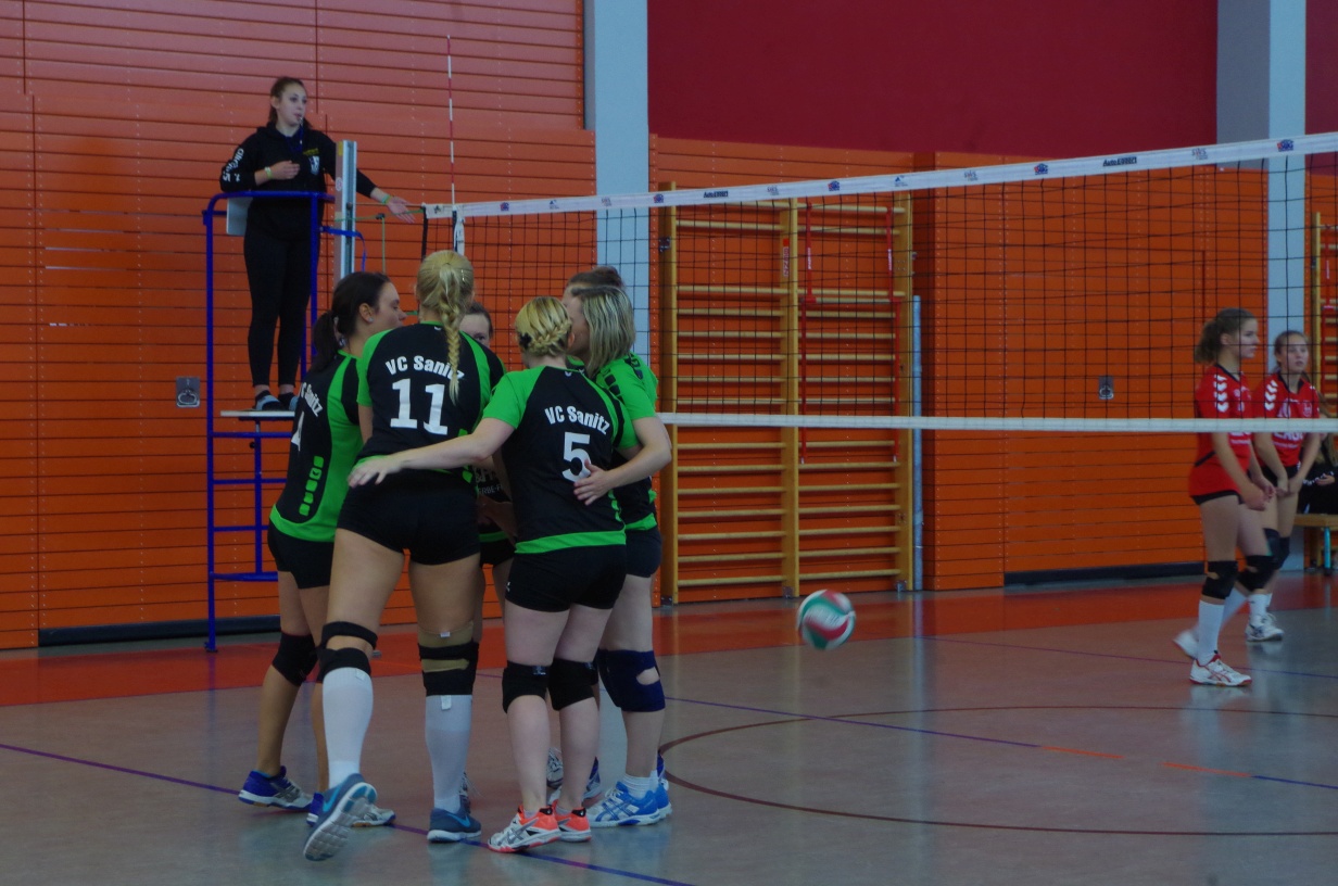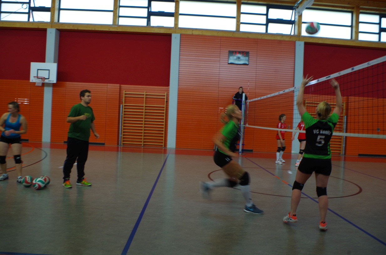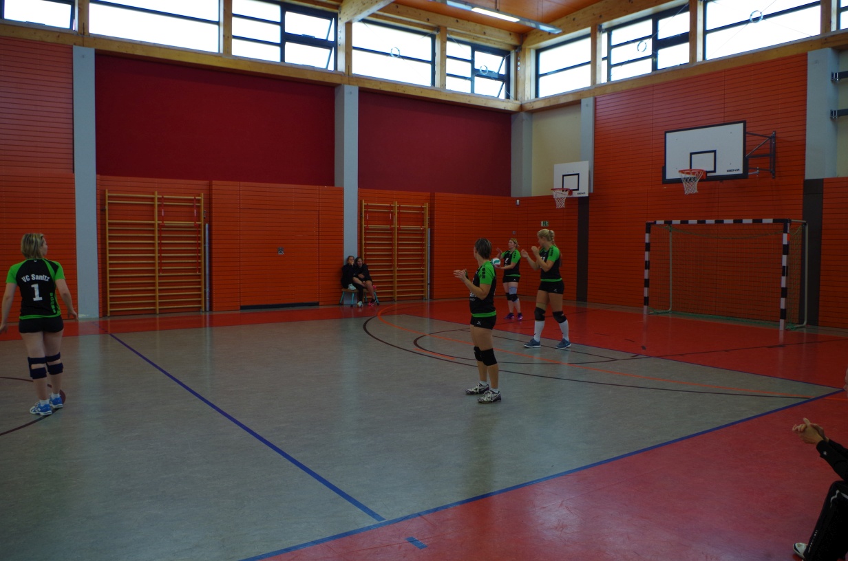 Wir waren erstaunt, wie flink sie waren. Dagegen sahen wir so manches Mal ganz schön alt aus (im wahrsten Sinne des Wortes, denn wir sind überwiegend doppelt so alt). Doch wollten wir zumindest mit unseren bereits gewonnenen Erfahrungen punkten und gewannen die ersten beiden Sätze mit 25:13, bzw. 25:14. Allerdings wären wir nicht der VC Sanitz, wenn nicht nach einem Hoch ein Tief folgen würde. Zum Ende des dritten Satzes wollten die Annahmen nicht mehr klappen und die Stralsunder Mädels kamen mit ihren Punkten immer näher. Zum Glück konnten wir eine Niederlage gerade so abwenden und verabschiedeten die Gastgeber mit einem 25:22.