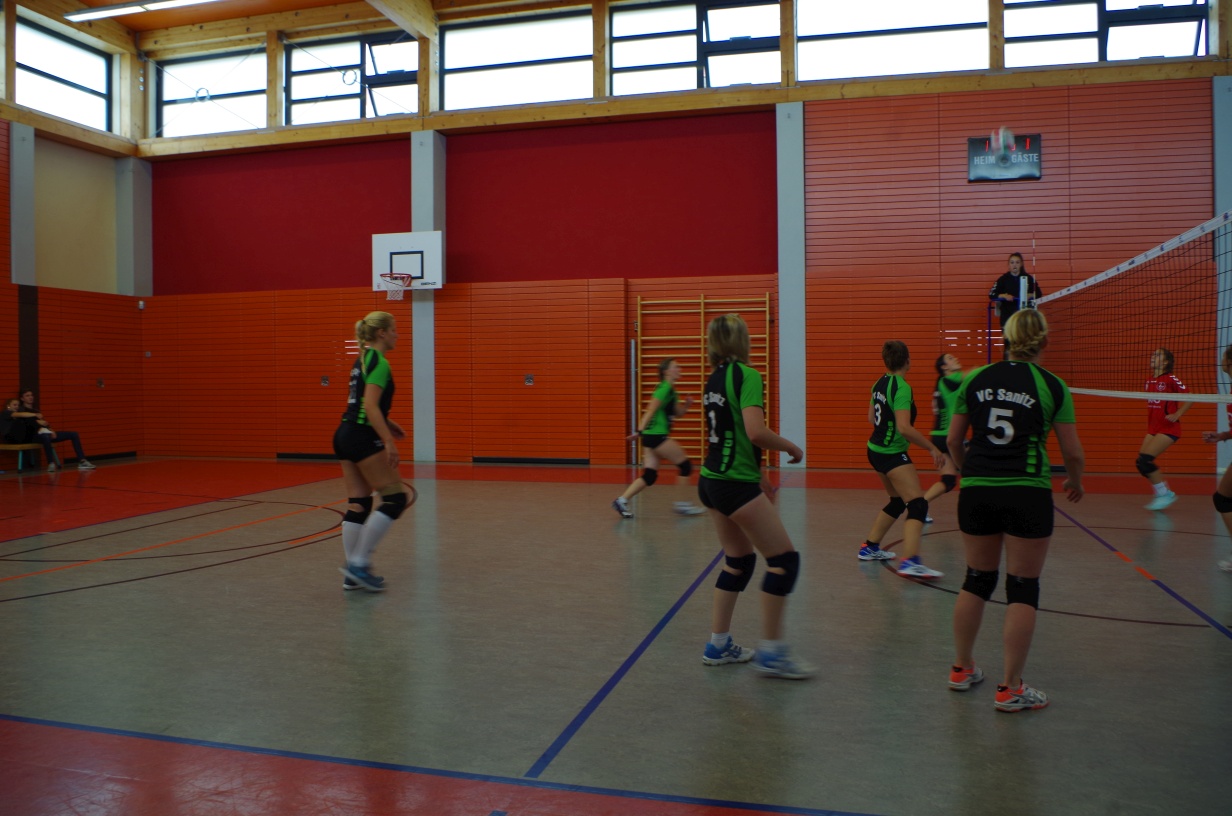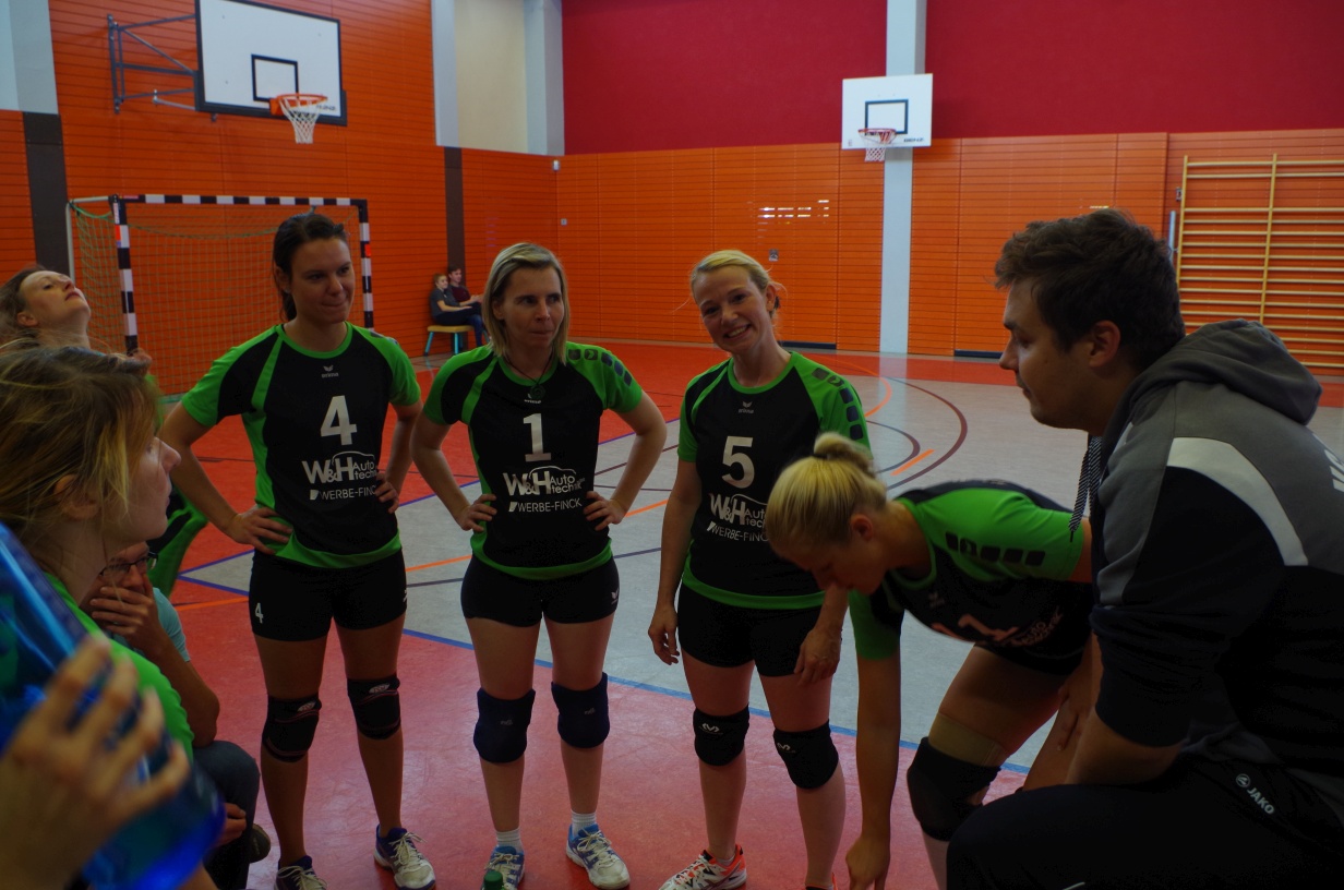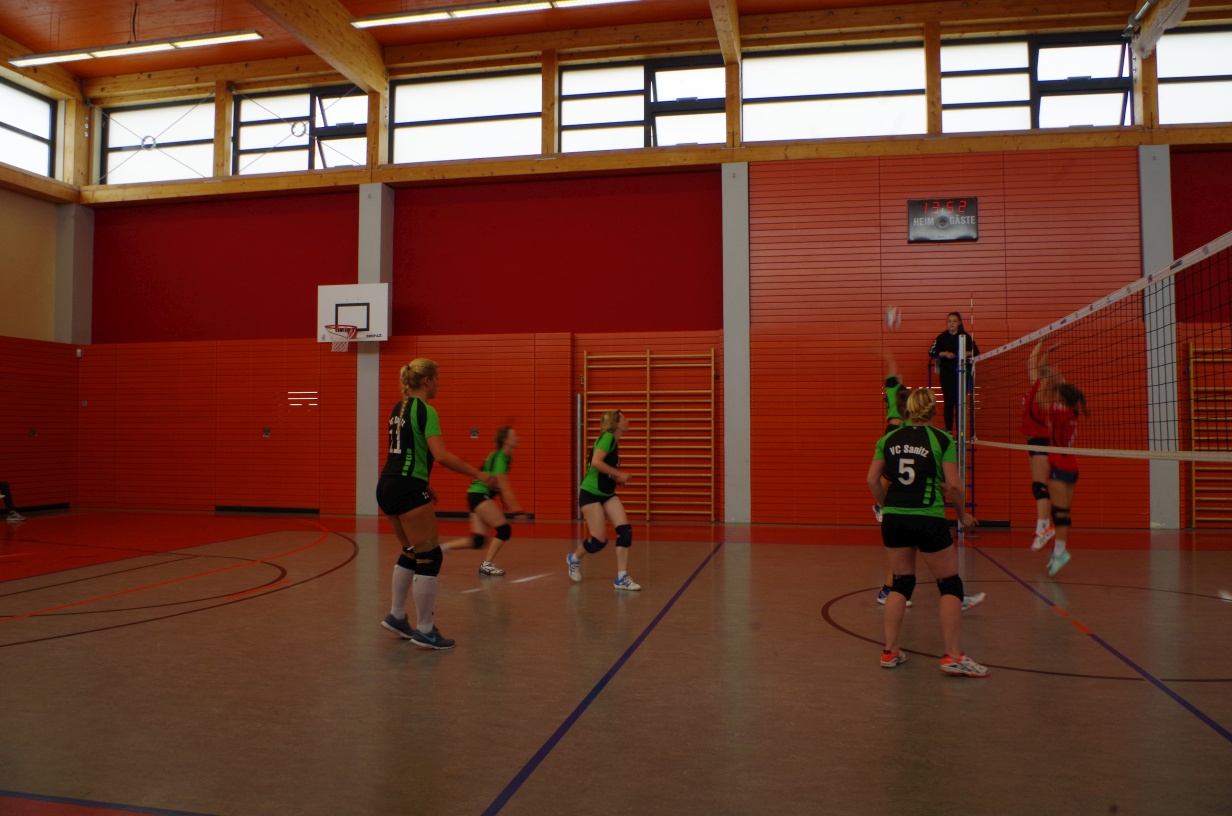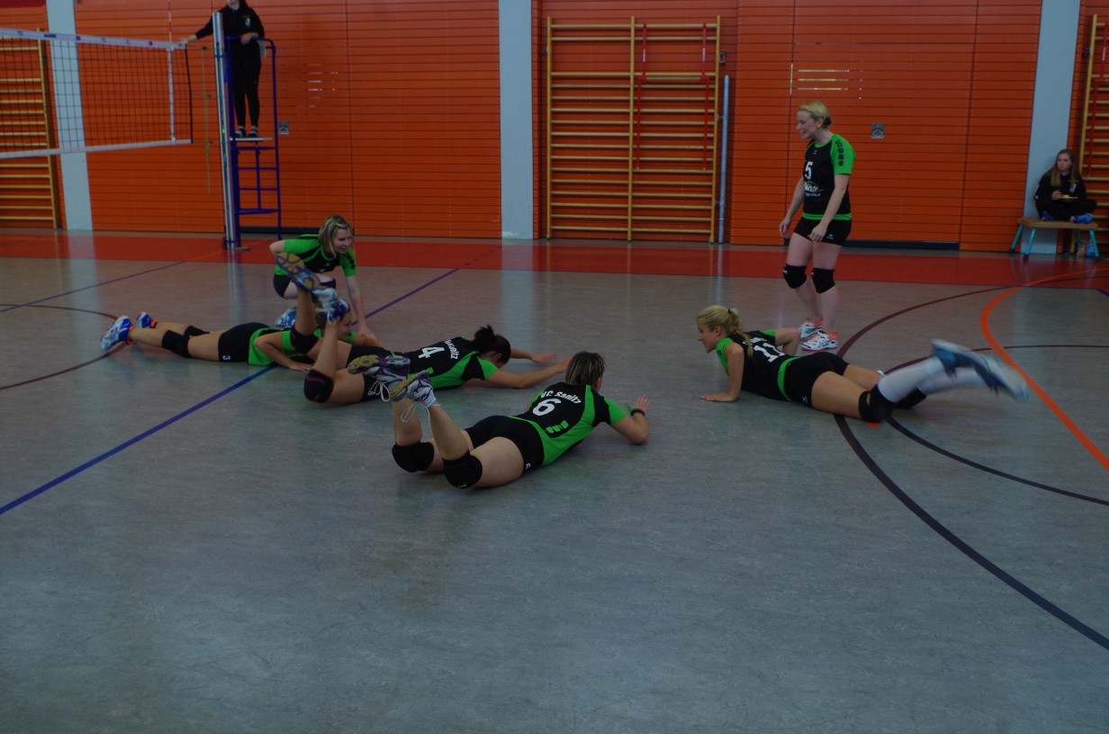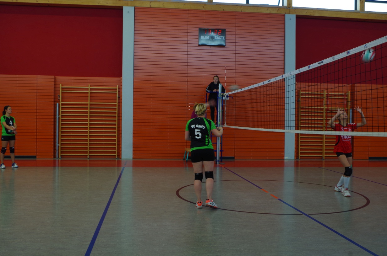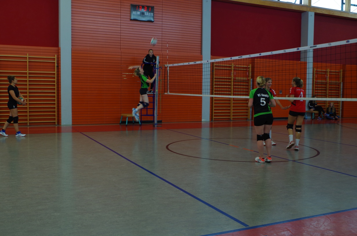 Wir waren erstaunt, wie flink sie waren. Dagegen sahen wir so manches Mal ganz schön alt aus (im wahrsten Sinne des Wortes, denn wir sind überwiegend doppelt so alt). Doch wollten wir zumindest mit unseren bereits gewonnenen Erfahrungen punkten und gewannen die ersten beiden Sätze mit 25:13, bzw. 25:14. Allerdings wären wir nicht der VC Sanitz, wenn nicht nach einem Hoch ein Tief folgen würde. Zum Ende des dritten Satzes wollten die Annahmen nicht mehr klappen und die Stralsunder Mädels kamen mit ihren Punkten immer näher. Zum Glück konnten wir eine Niederlage gerade so abwenden und verabschiedeten die Gastgeber mit einem 25:22.