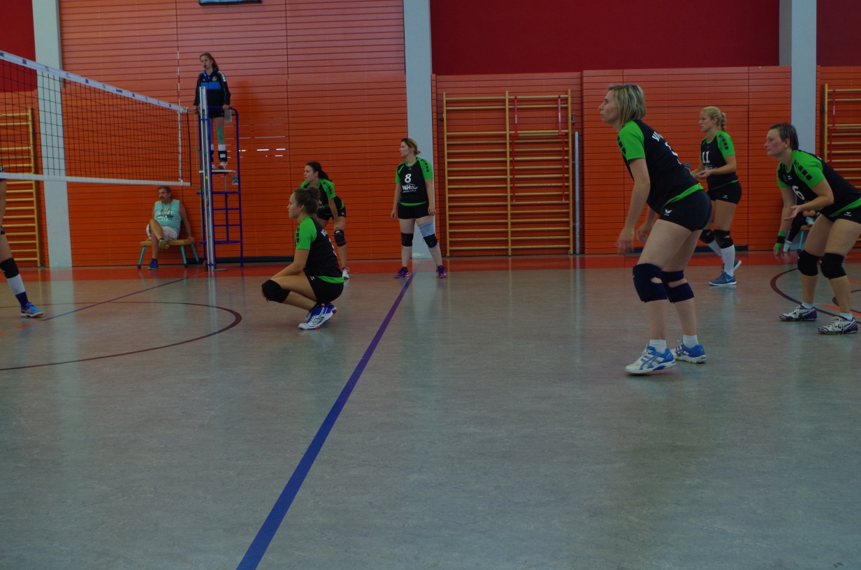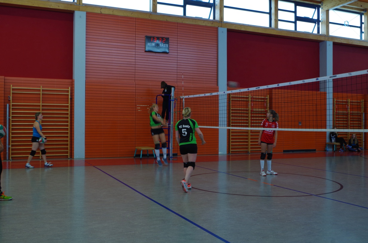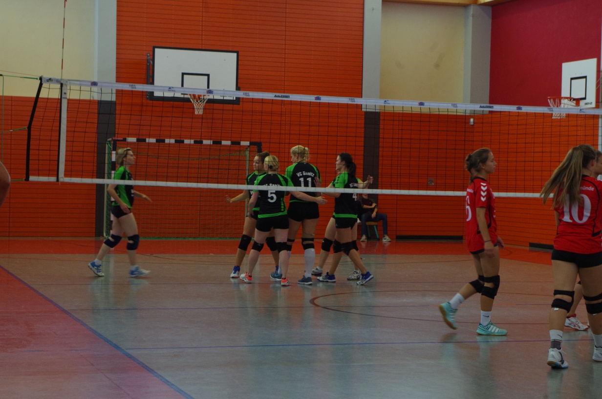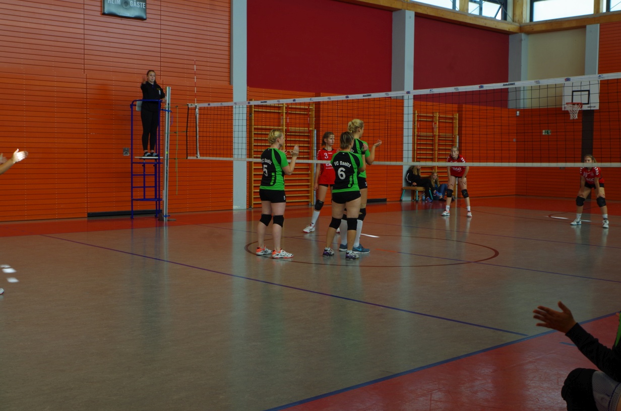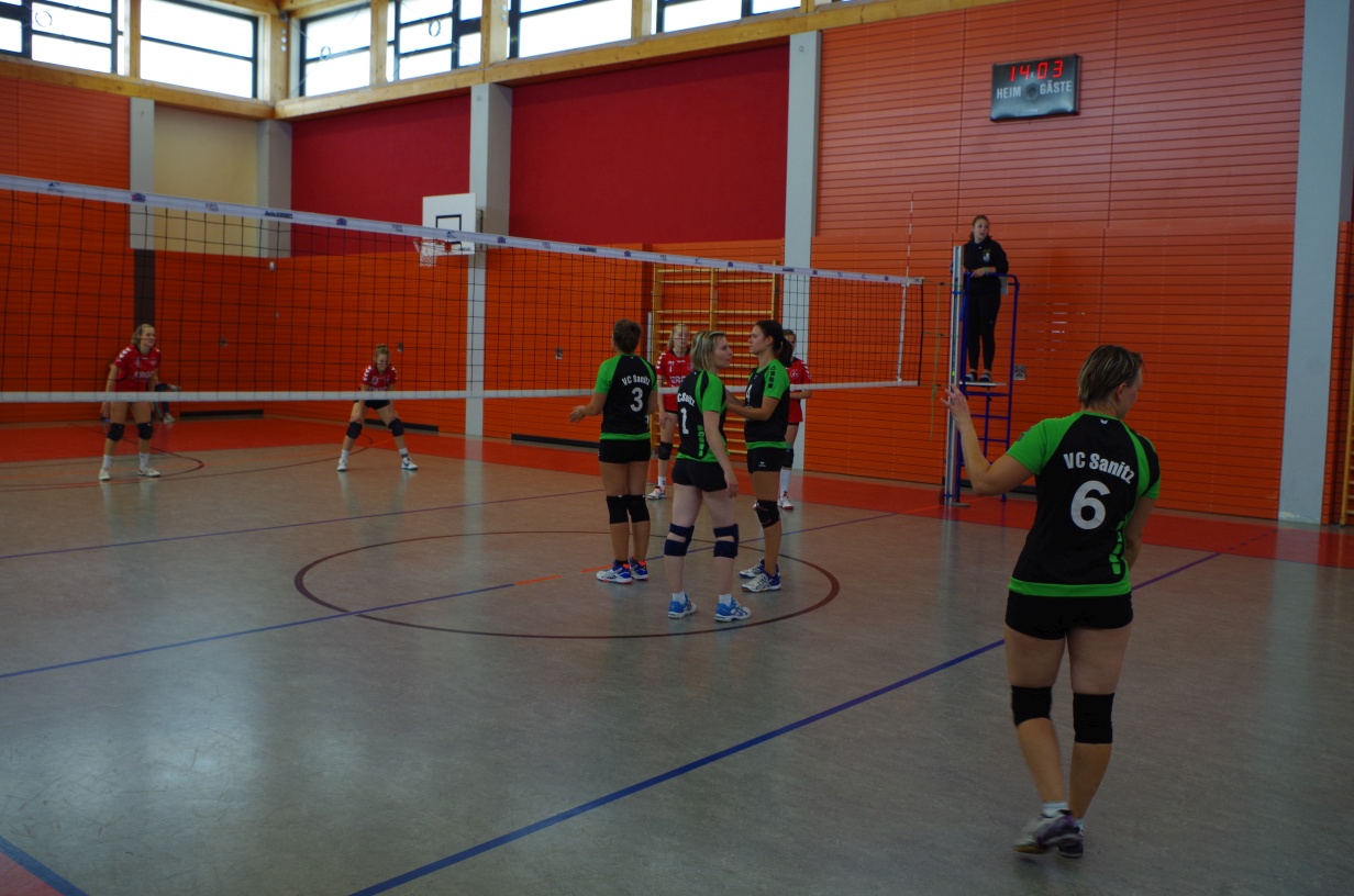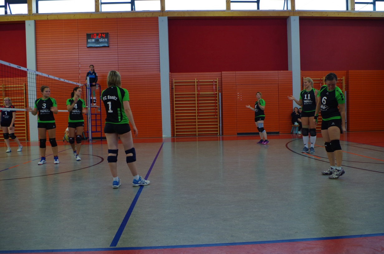 Wir waren erstaunt, wie flink sie waren. Dagegen sahen wir so manches Mal ganz schön alt aus (im wahrsten Sinne des Wortes, denn wir sind überwiegend doppelt so alt). Doch wollten wir zumindest mit unseren bereits gewonnenen Erfahrungen punkten und gewannen die ersten beiden Sätze mit 25:13, bzw. 25:14. Allerdings wären wir nicht der VC Sanitz, wenn nicht nach einem Hoch ein Tief folgen würde. Zum Ende des dritten Satzes wollten die Annahmen nicht mehr klappen und die Stralsunder Mädels kamen mit ihren Punkten immer näher. Zum Glück konnten wir eine Niederlage gerade so abwenden und verabschiedeten die Gastgeber mit einem 25:22.