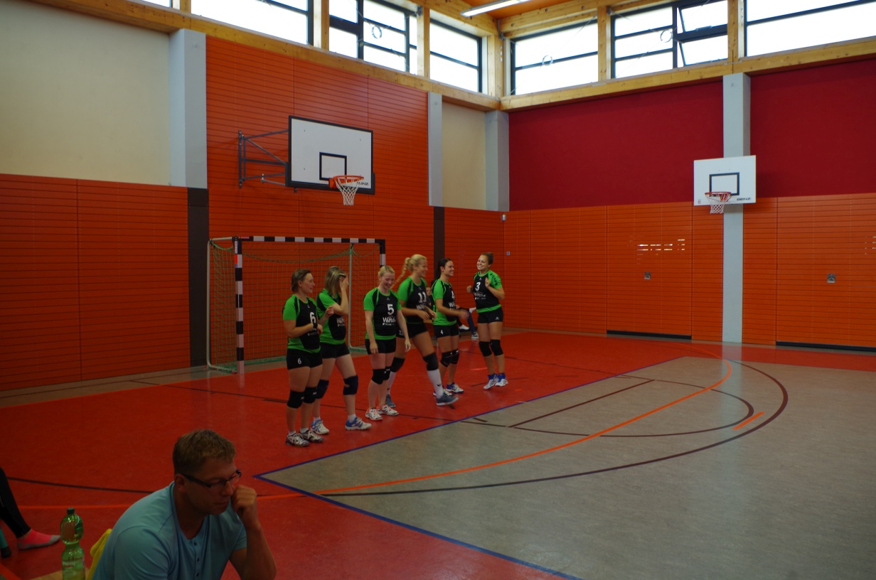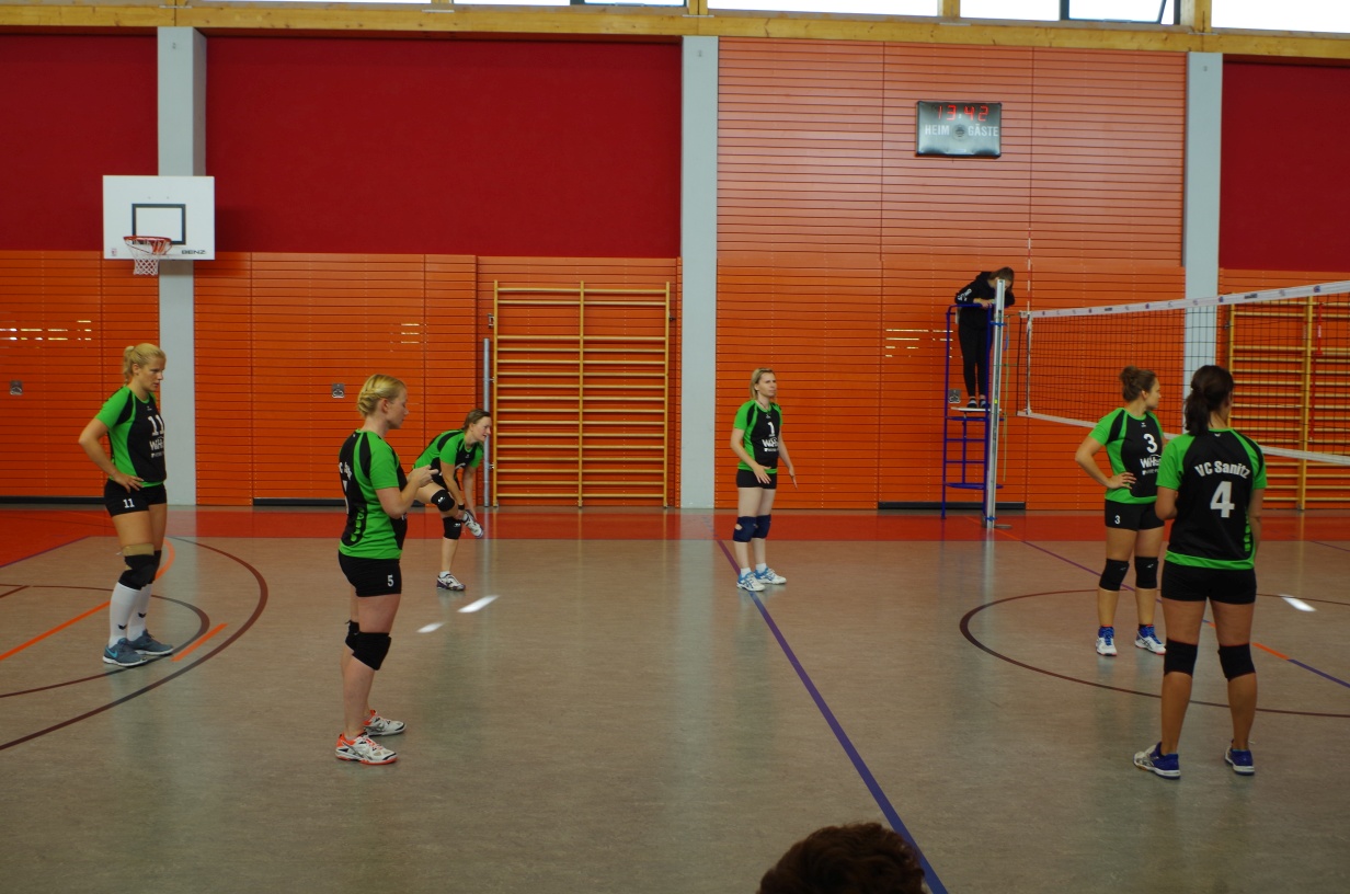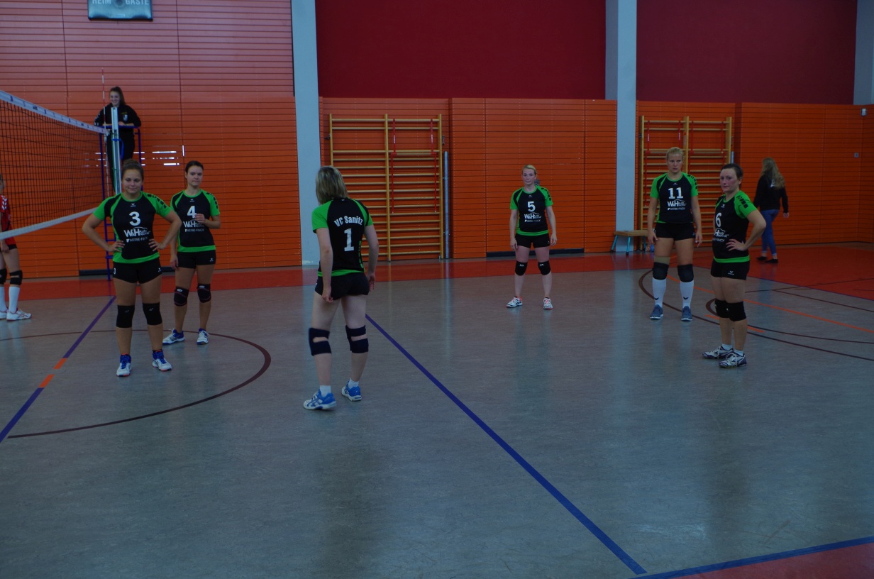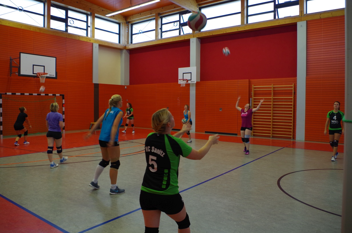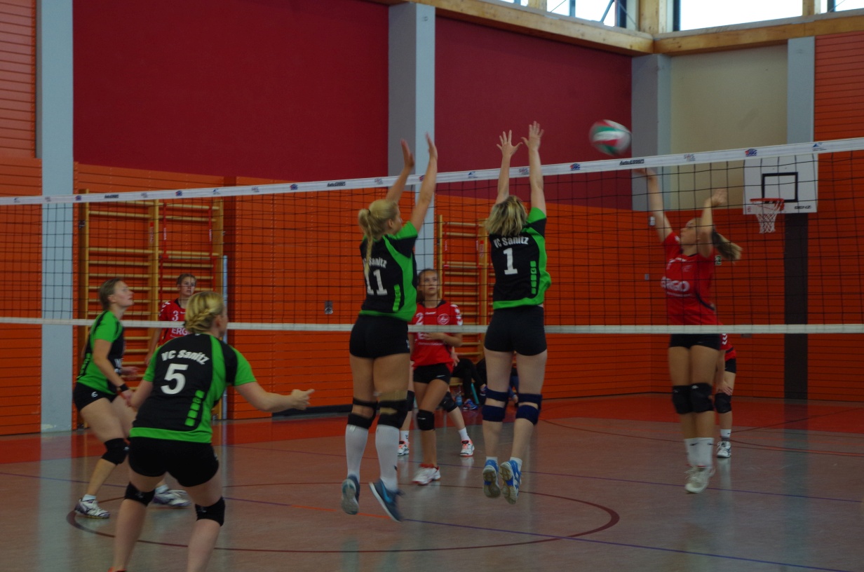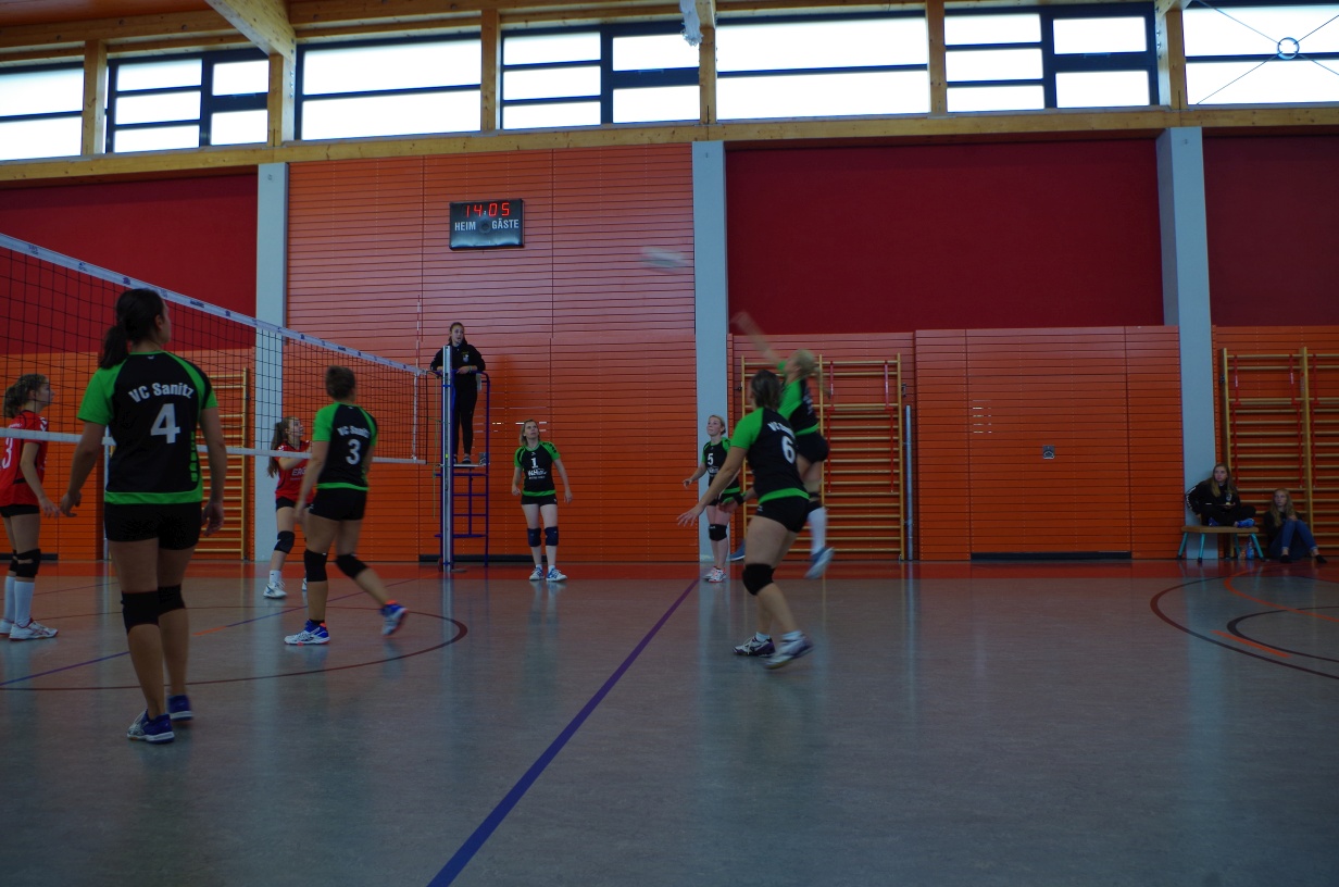 Wir waren erstaunt, wie flink sie waren. Dagegen sahen wir so manches Mal ganz schön alt aus (im wahrsten Sinne des Wortes, denn wir sind überwiegend doppelt so alt). Doch wollten wir zumindest mit unseren bereits gewonnenen Erfahrungen punkten und gewannen die ersten beiden Sätze mit 25:13, bzw. 25:14. Allerdings wären wir nicht der VC Sanitz, wenn nicht nach einem Hoch ein Tief folgen würde. Zum Ende des dritten Satzes wollten die Annahmen nicht mehr klappen und die Stralsunder Mädels kamen mit ihren Punkten immer näher. Zum Glück konnten wir eine Niederlage gerade so abwenden und verabschiedeten die Gastgeber mit einem 25:22.