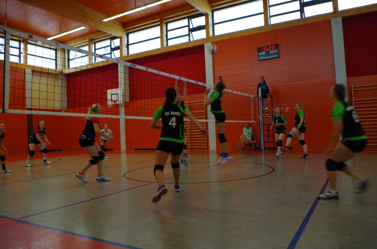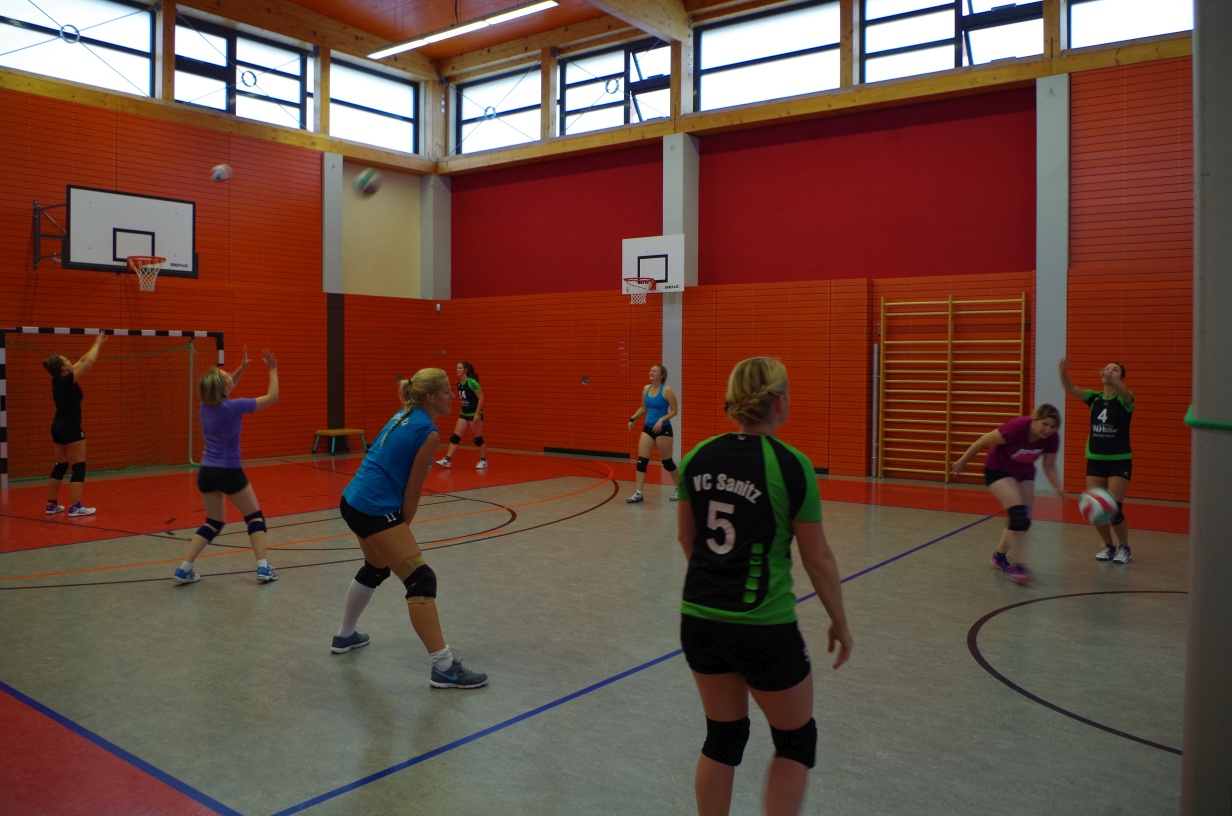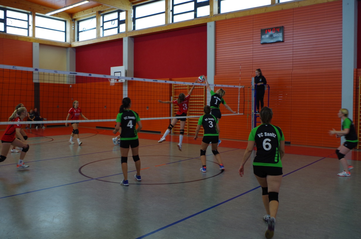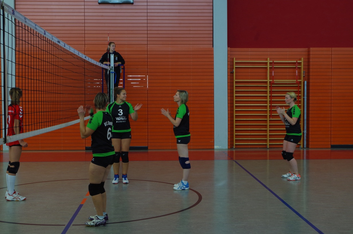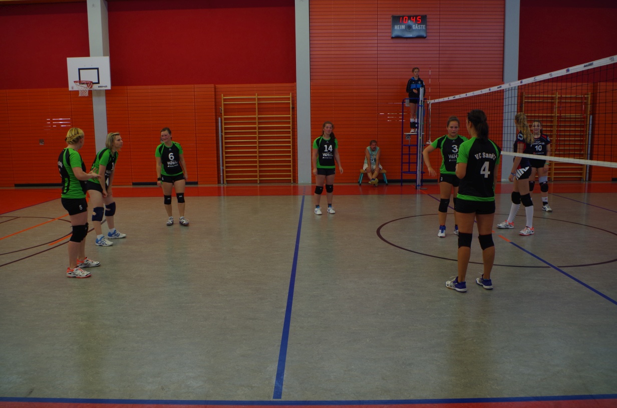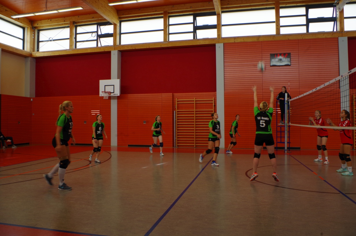 Wir waren erstaunt, wie flink sie waren. Dagegen sahen wir so manches Mal ganz schön alt aus (im wahrsten Sinne des Wortes, denn wir sind überwiegend doppelt so alt). Doch wollten wir zumindest mit unseren bereits gewonnenen Erfahrungen punkten und gewannen die ersten beiden Sätze mit 25:13, bzw. 25:14. Allerdings wären wir nicht der VC Sanitz, wenn nicht nach einem Hoch ein Tief folgen würde. Zum Ende des dritten Satzes wollten die Annahmen nicht mehr klappen und die Stralsunder Mädels kamen mit ihren Punkten immer näher. Zum Glück konnten wir eine Niederlage gerade so abwenden und verabschiedeten die Gastgeber mit einem 25:22.