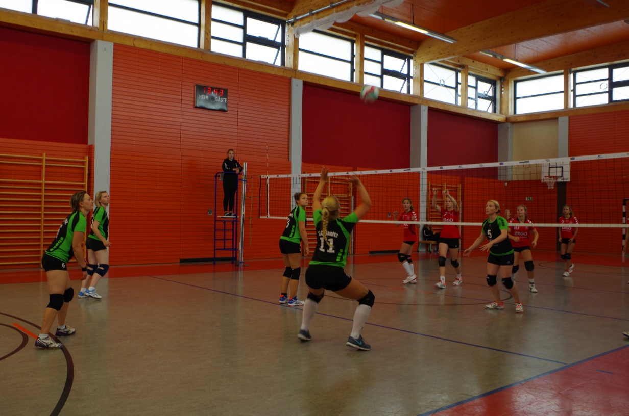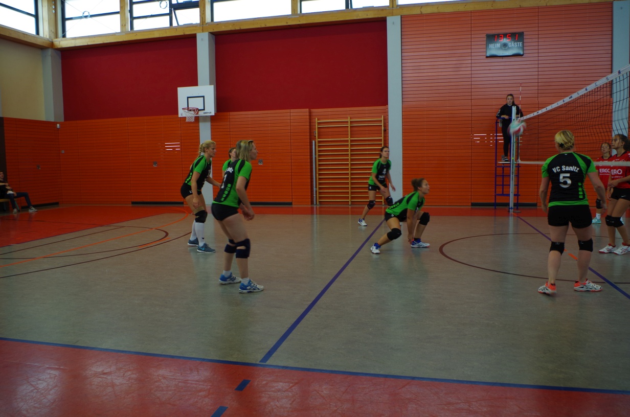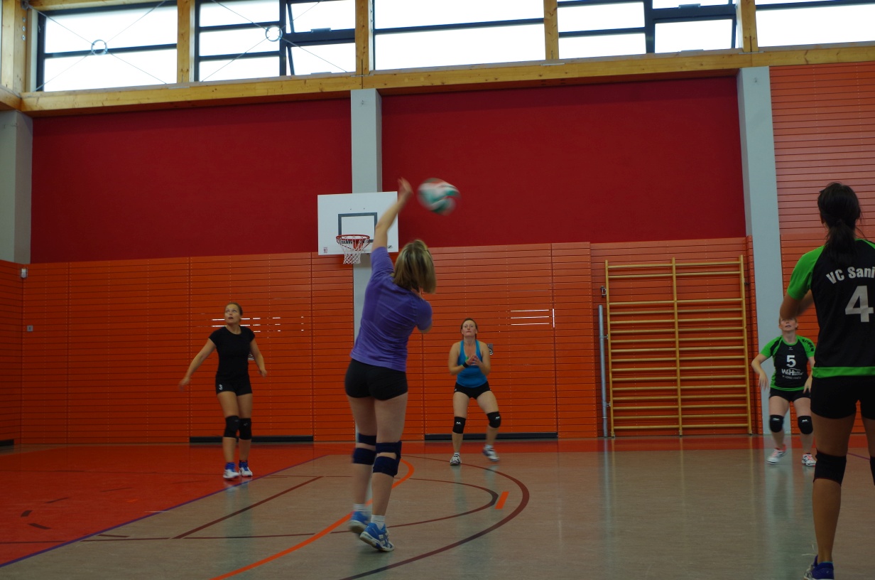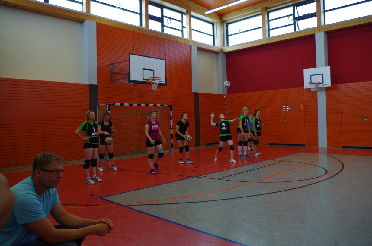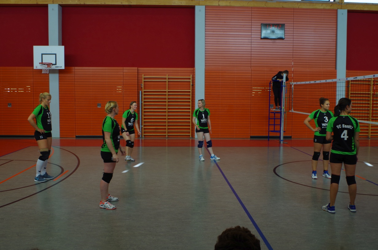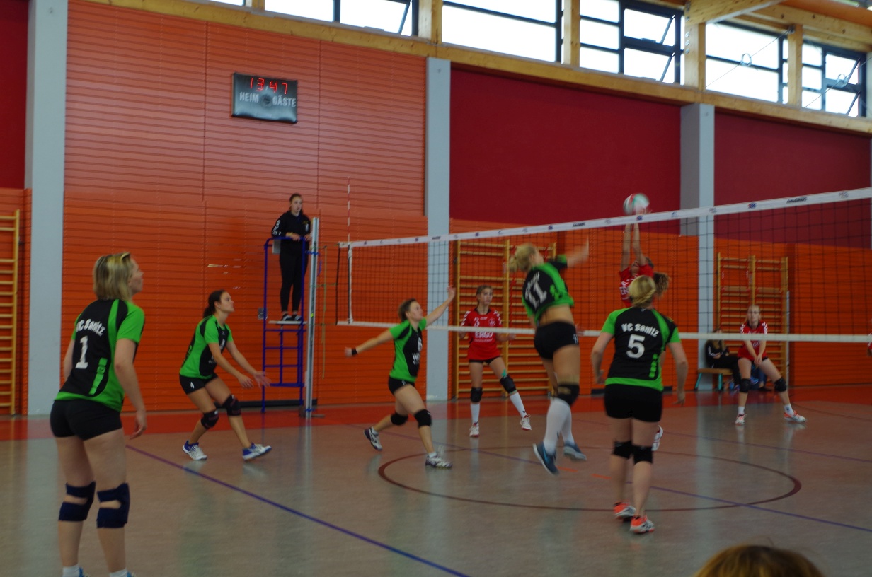 Wir waren erstaunt, wie flink sie waren. Dagegen sahen wir so manches Mal ganz schön alt aus (im wahrsten Sinne des Wortes, denn wir sind überwiegend doppelt so alt). Doch wollten wir zumindest mit unseren bereits gewonnenen Erfahrungen punkten und gewannen die ersten beiden Sätze mit 25:13, bzw. 25:14. Allerdings wären wir nicht der VC Sanitz, wenn nicht nach einem Hoch ein Tief folgen würde. Zum Ende des dritten Satzes wollten die Annahmen nicht mehr klappen und die Stralsunder Mädels kamen mit ihren Punkten immer näher. Zum Glück konnten wir eine Niederlage gerade so abwenden und verabschiedeten die Gastgeber mit einem 25:22.