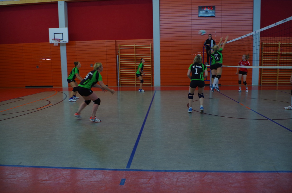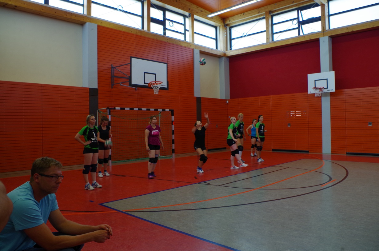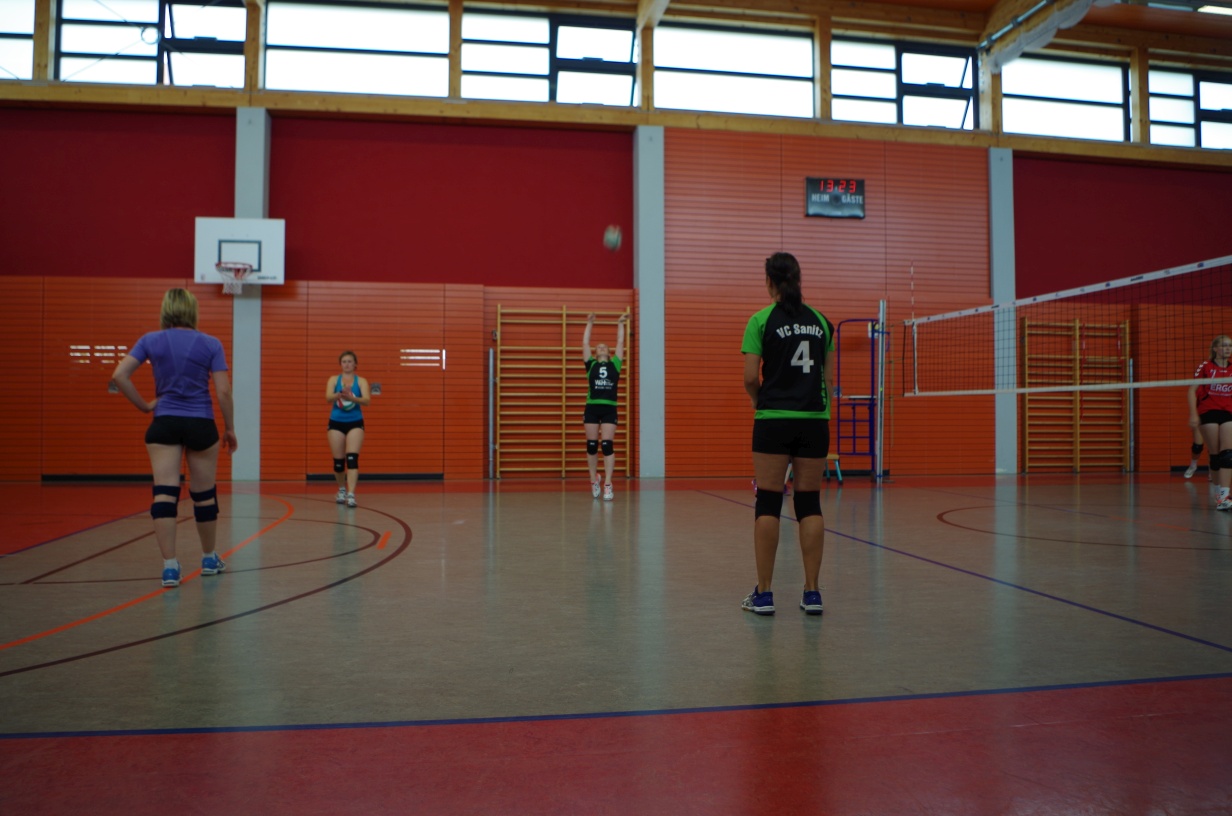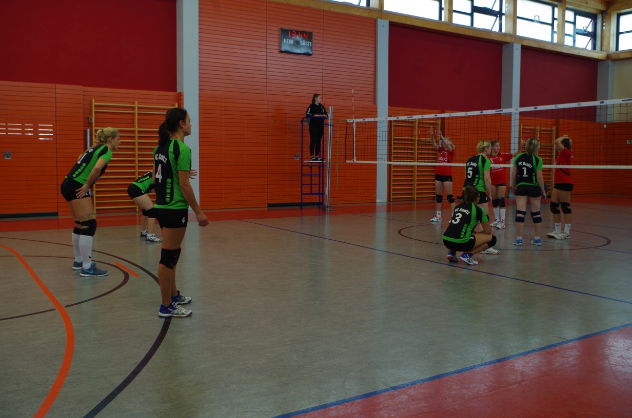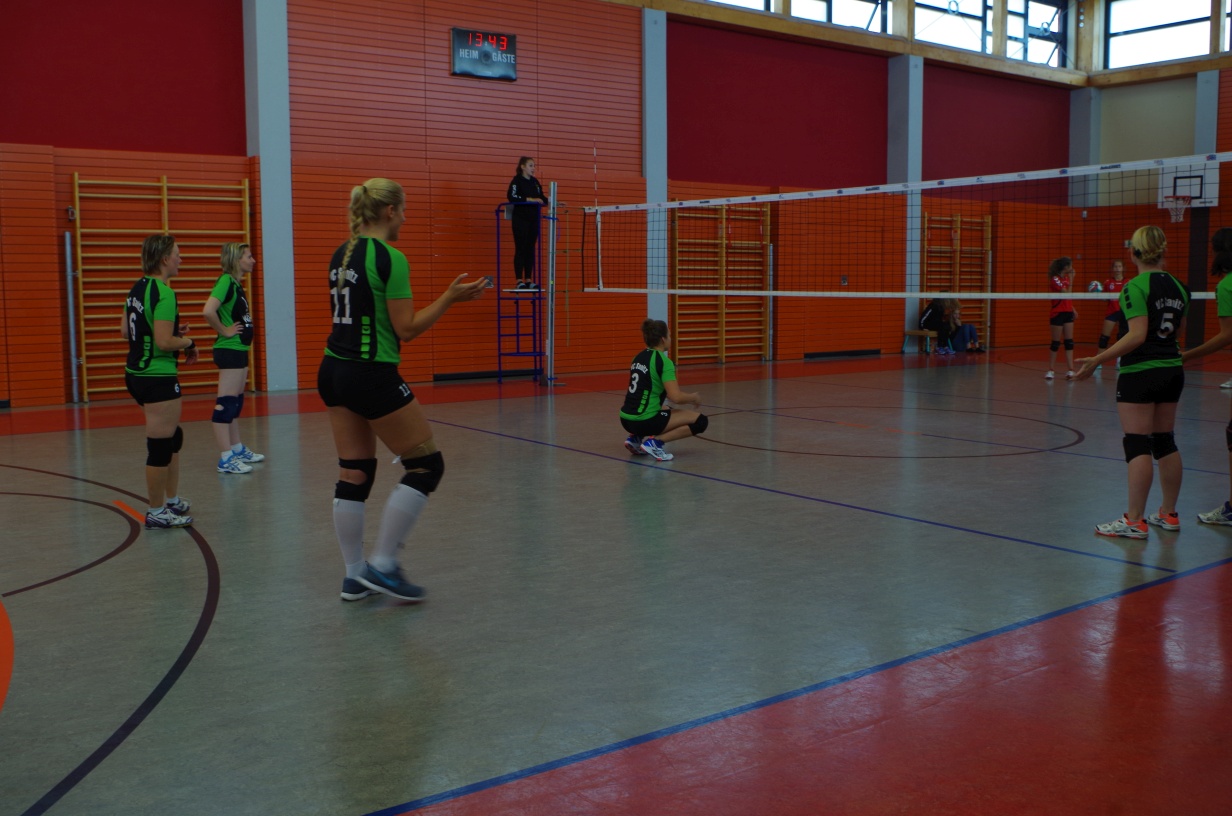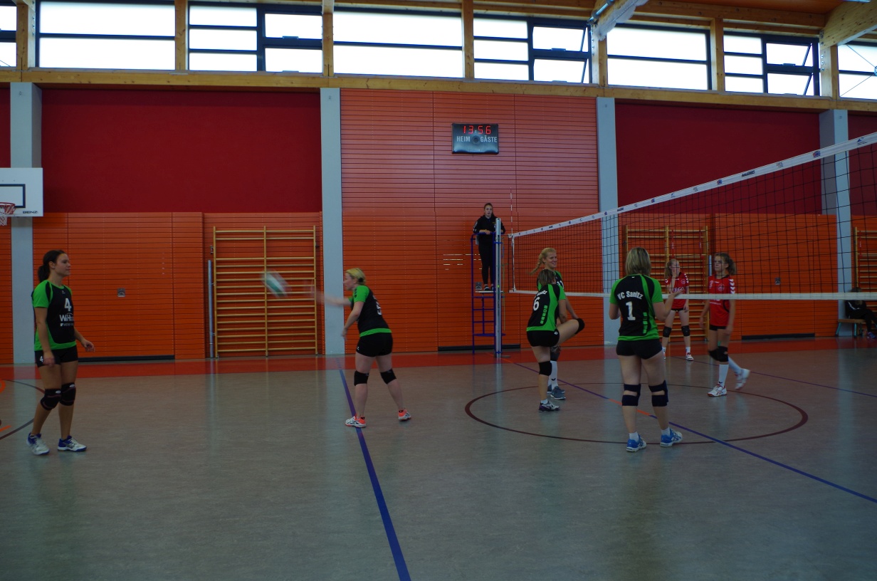 Wir waren erstaunt, wie flink sie waren. Dagegen sahen wir so manches Mal ganz schön alt aus (im wahrsten Sinne des Wortes, denn wir sind überwiegend doppelt so alt). Doch wollten wir zumindest mit unseren bereits gewonnenen Erfahrungen punkten und gewannen die ersten beiden Sätze mit 25:13, bzw. 25:14. Allerdings wären wir nicht der VC Sanitz, wenn nicht nach einem Hoch ein Tief folgen würde. Zum Ende des dritten Satzes wollten die Annahmen nicht mehr klappen und die Stralsunder Mädels kamen mit ihren Punkten immer näher. Zum Glück konnten wir eine Niederlage gerade so abwenden und verabschiedeten die Gastgeber mit einem 25:22.