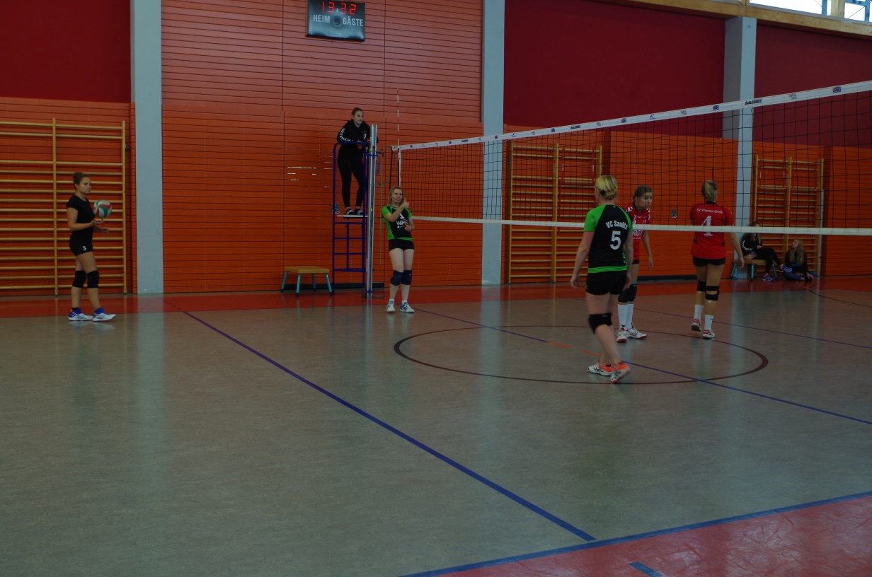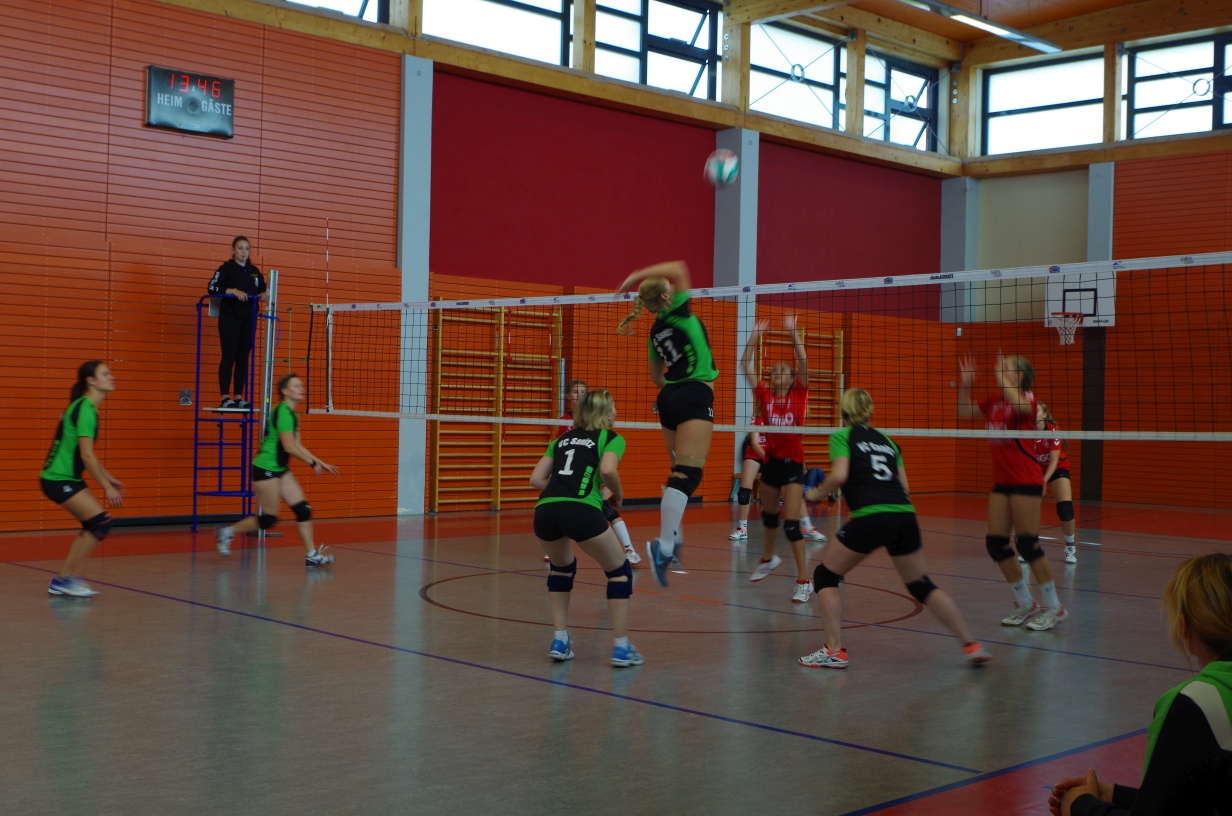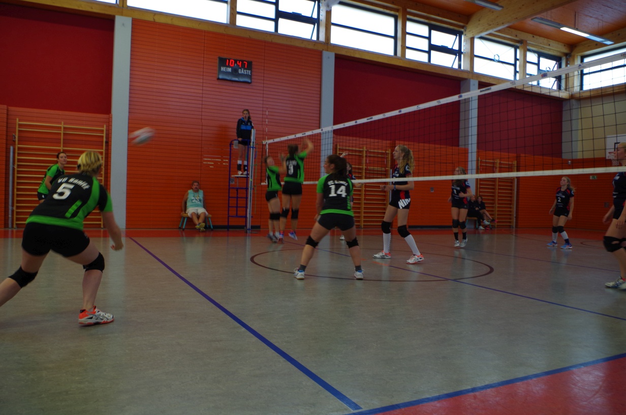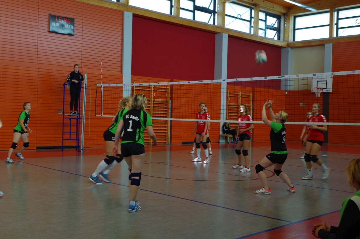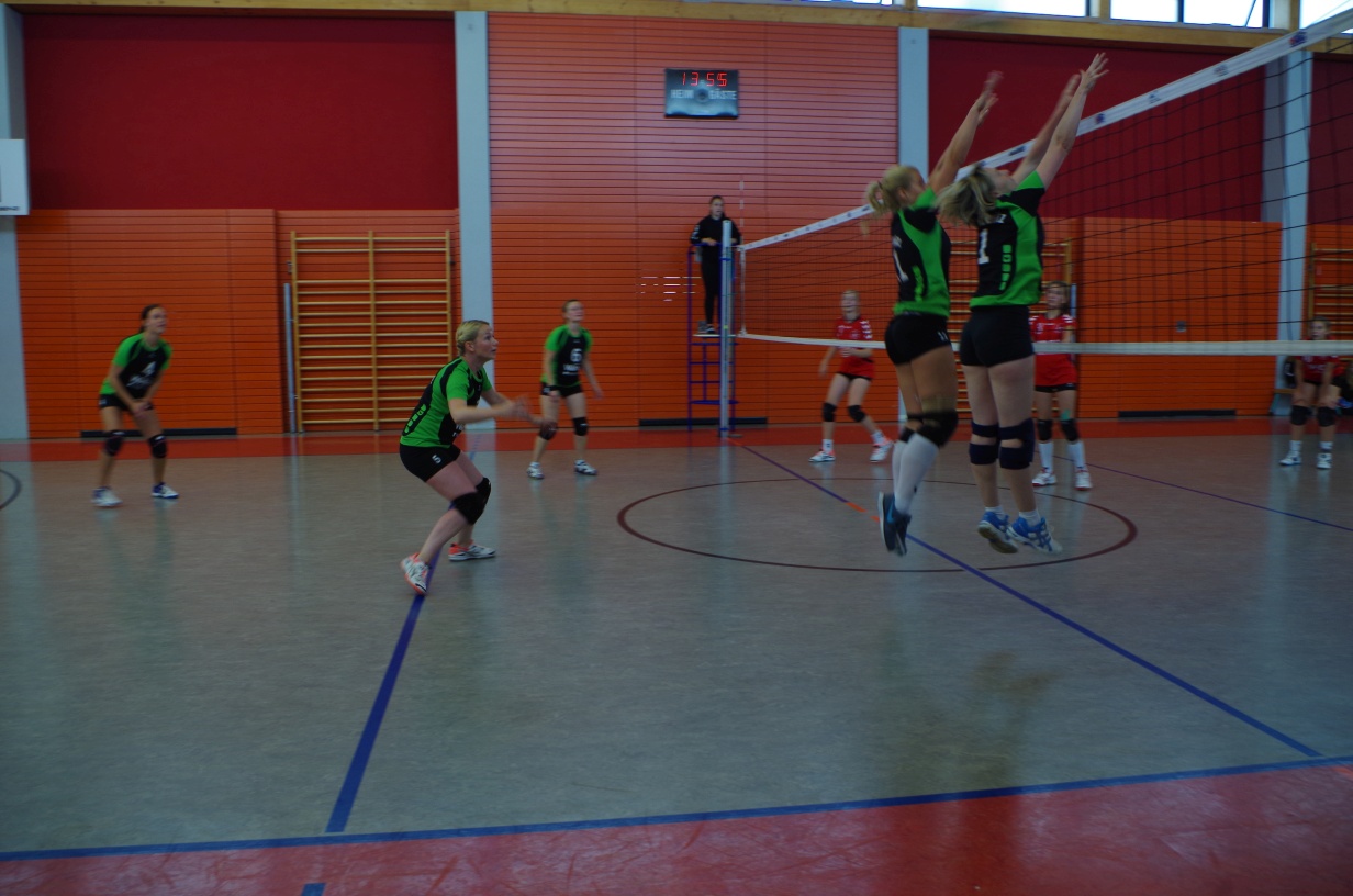 Wir waren erstaunt, wie flink sie waren. Dagegen sahen wir so manches Mal ganz schön alt aus (im wahrsten Sinne des Wortes, denn wir sind überwiegend doppelt so alt). Doch wollten wir zumindest mit unseren bereits gewonnenen Erfahrungen punkten und gewannen die ersten beiden Sätze mit 25:13, bzw. 25:14. Allerdings wären wir nicht der VC Sanitz, wenn nicht nach einem Hoch ein Tief folgen würde. Zum Ende des dritten Satzes wollten die Annahmen nicht mehr klappen und die Stralsunder Mädels kamen mit ihren Punkten immer näher. Zum Glück konnten wir eine Niederlage gerade so abwenden und verabschiedeten die Gastgeber mit einem 25:22.