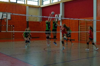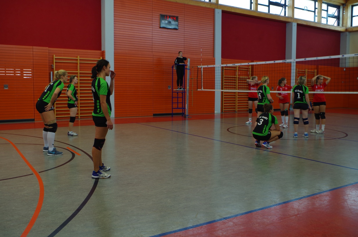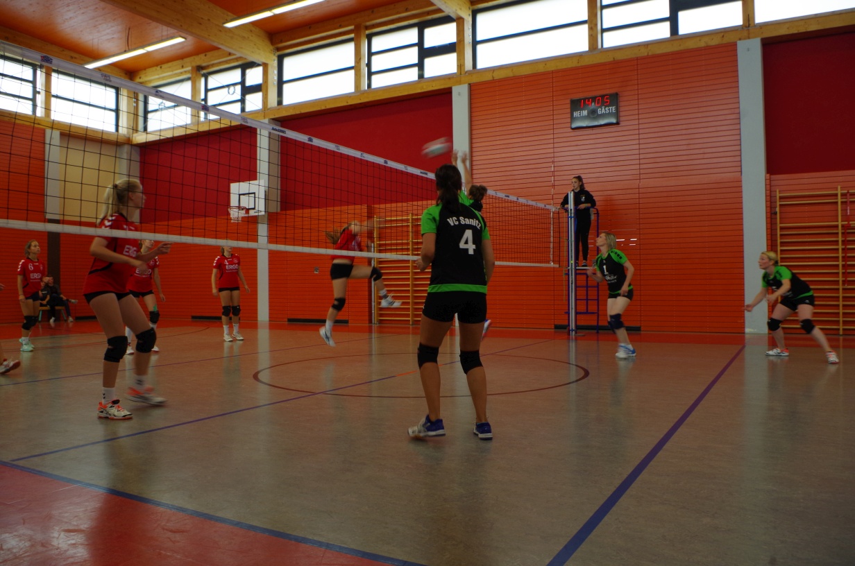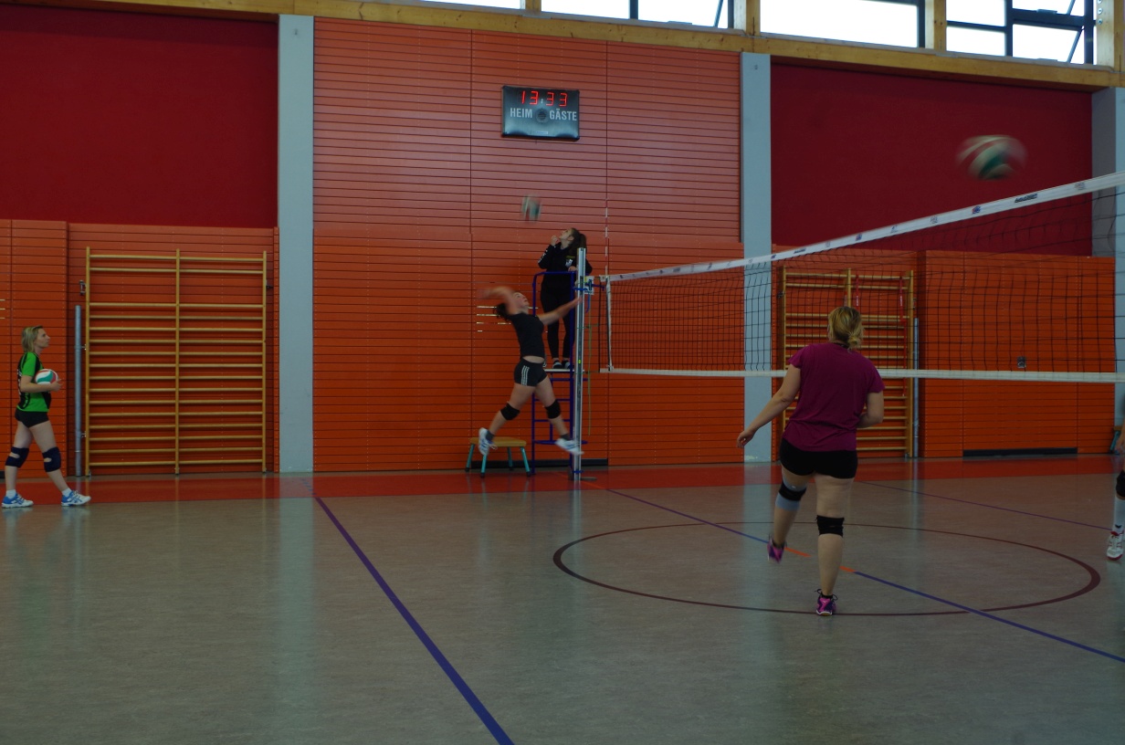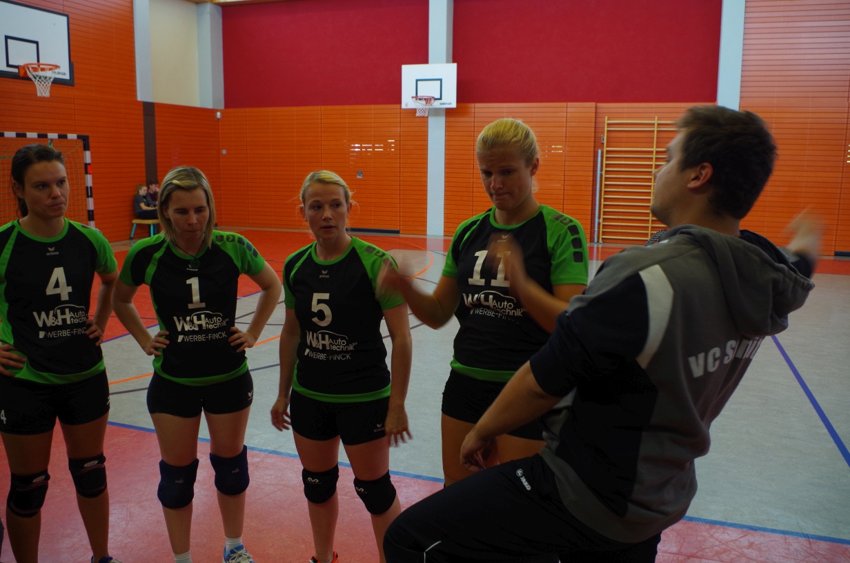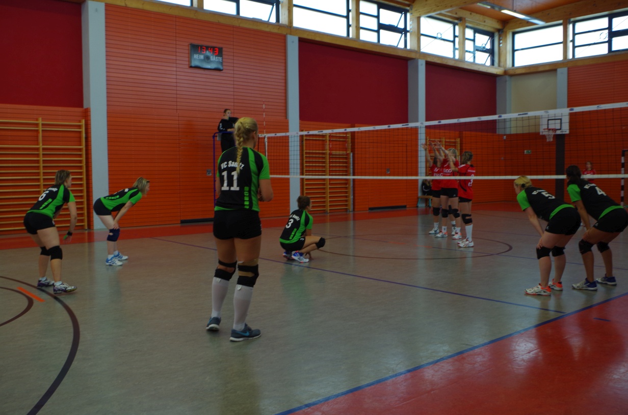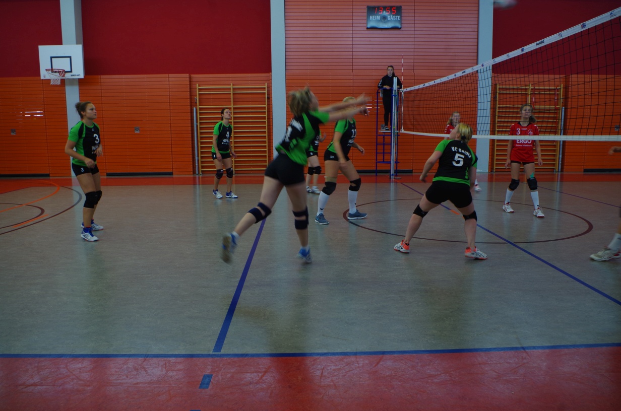 Wir waren erstaunt, wie flink sie waren. Dagegen sahen wir so manches Mal ganz schön alt aus (im wahrsten Sinne des Wortes, denn wir sind überwiegend doppelt so alt). Doch wollten wir zumindest mit unseren bereits gewonnenen Erfahrungen punkten und gewannen die ersten beiden Sätze mit 25:13, bzw. 25:14. Allerdings wären wir nicht der VC Sanitz, wenn nicht nach einem Hoch ein Tief folgen würde. Zum Ende des dritten Satzes wollten die Annahmen nicht mehr klappen und die Stralsunder Mädels kamen mit ihren Punkten immer näher. Zum Glück konnten wir eine Niederlage gerade so abwenden und verabschiedeten die Gastgeber mit einem 25:22.