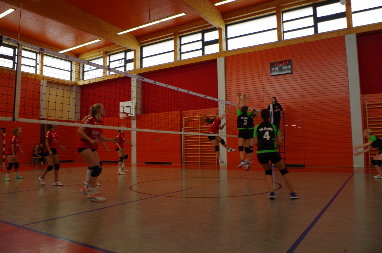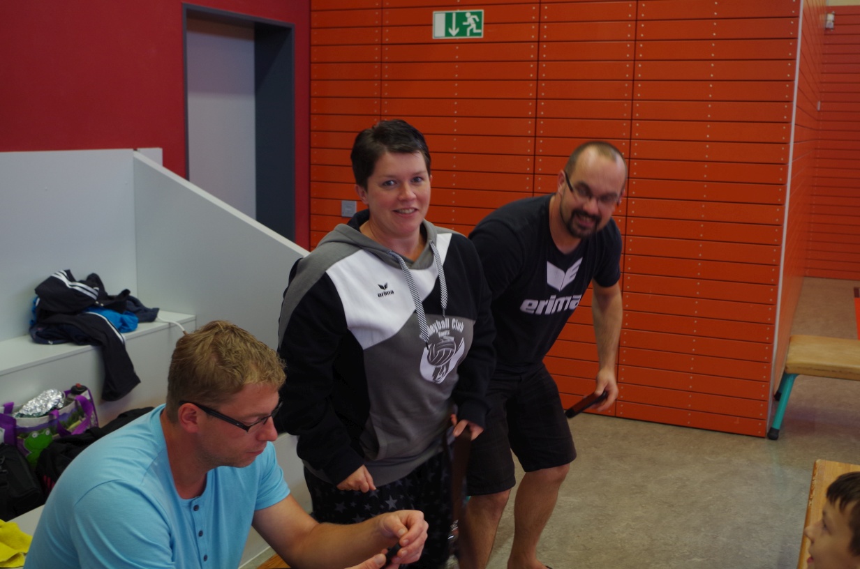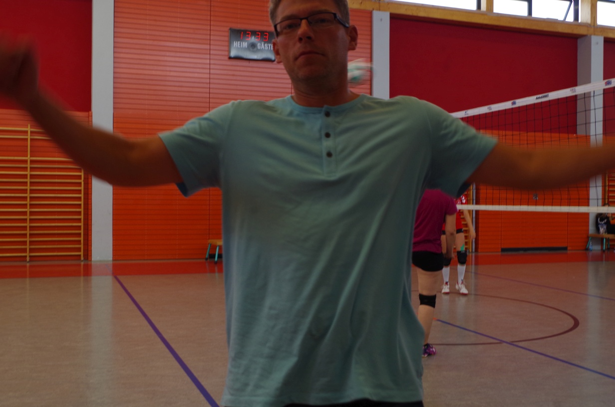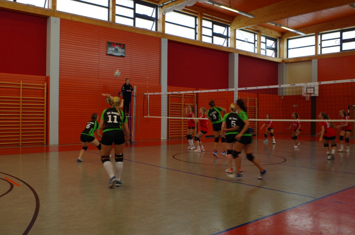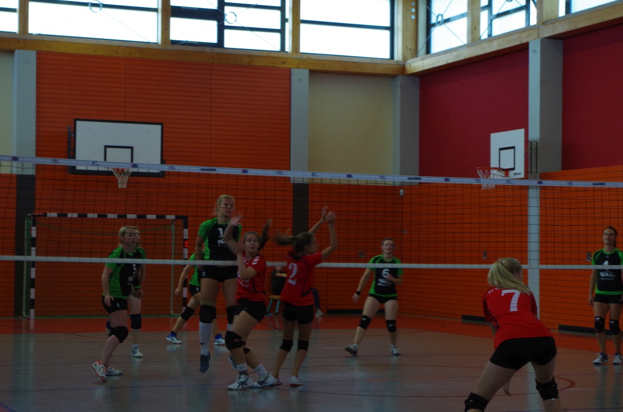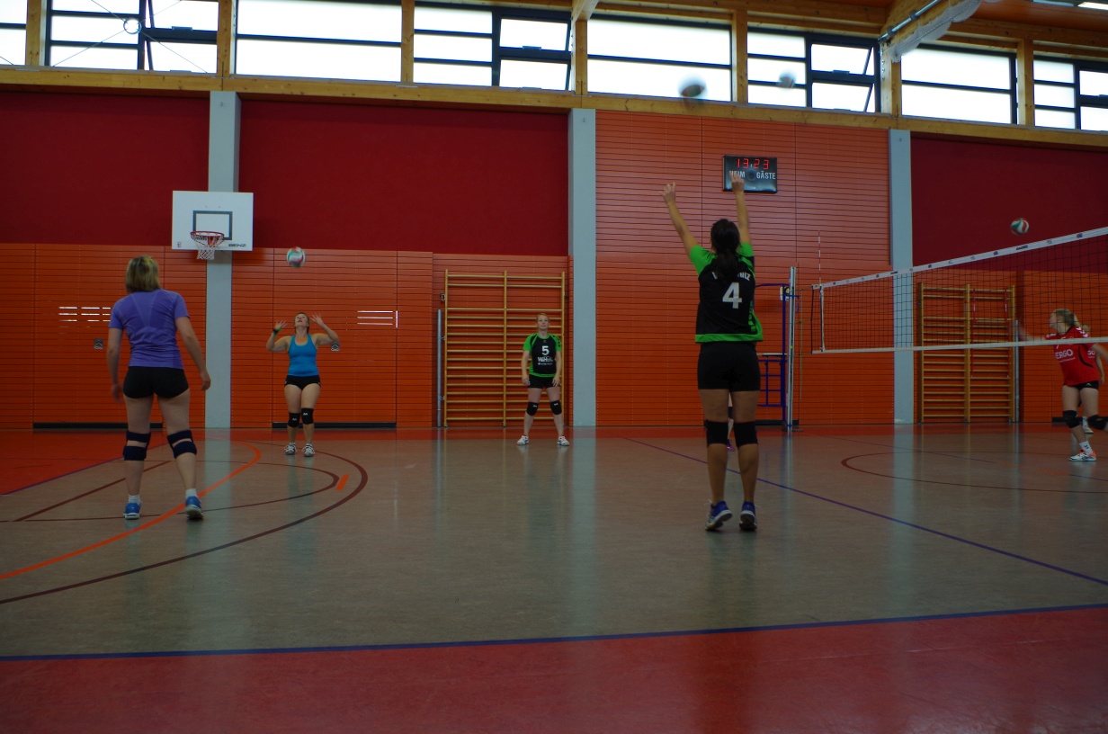 Wir waren erstaunt, wie flink sie waren. Dagegen sahen wir so manches Mal ganz schön alt aus (im wahrsten Sinne des Wortes, denn wir sind überwiegend doppelt so alt). Doch wollten wir zumindest mit unseren bereits gewonnenen Erfahrungen punkten und gewannen die ersten beiden Sätze mit 25:13, bzw. 25:14. Allerdings wären wir nicht der VC Sanitz, wenn nicht nach einem Hoch ein Tief folgen würde. Zum Ende des dritten Satzes wollten die Annahmen nicht mehr klappen und die Stralsunder Mädels kamen mit ihren Punkten immer näher. Zum Glück konnten wir eine Niederlage gerade so abwenden und verabschiedeten die Gastgeber mit einem 25:22.