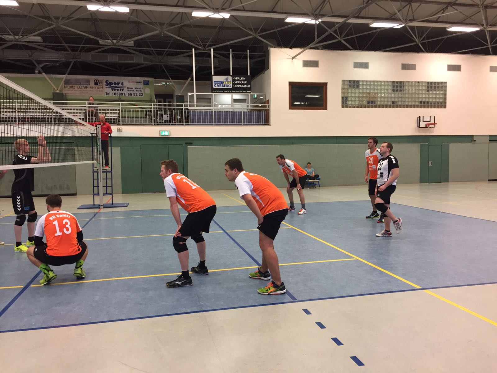 Im ersten Spiel hatten wir es auch gleich mit dem Tabellenzweiten aus Waren zu tun. Etwas überraschend fanden wir gut ins Spiel und es entwickelte sich ein ausgeglichener Satz in dem wir uns kurz vor Ende knapp mit 24 zu 23 absetzen konnten. Satzball für uns - ein erster Teilerfolg war zum Greifen nah. Doch wie so oft in dieser Saison zeigten wir in den entscheidenden Momenten Nerven und mussten auch diesen Satz noch mit 24 zu 26 abgeben. Auf den Rückschlag folgte ein zweiter Satz zum Vergessen. Gerade in der Annahme zeigten sich eklatante Schwächen und auch beim Blocken liefen wir bestenfalls (manchmal wurde auch gleich verweigert) hinterher. Ein bitteres 15 zu 25 war das Resultat. Doch schon der letzte Spieltag in Rövershagen zeigte, dass wir mental gewachsen sind und damit waren wir in der Lage den Satz zum Vergessen auch wirklich schnell aus dem Gedächtnis zu löschen. Im dritten Satz spielten wir endlich mal nach unseren Möglichkeiten. Wir zeigten Moral, stiegen wie Phönix aus der Asche und gewannen den Satz 25 zu 22. Nun legte der SKV Müritz jedoch eine Schippe drauf und bewies uns, dass sie nicht zu Unrecht zu den Aufstiegsaspiranten in der Landesliga zählen. Wir bekamen auf ihrer Seite keinen Ball mehr auf den Boden und waren in Annahme und Feldabwehr deutlich unterlegen. Zum Ende gaben wir uns leider zu leicht mit 16 zu 25 geschlagen. Die bessere Mannschaft hatte gewonnen.